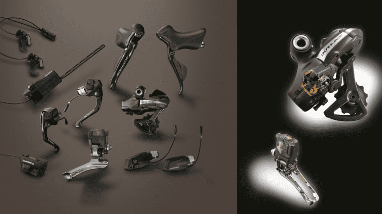 電動コンポーネントとは、その名の通り電力でディレイラーをコントロールする機構のこと。ワイヤーの張力によって制御する機械式と異なり、スイッチひとつでシフトチェンジすることができる大変便利なものだ。代表的なものとして、シマノのDi2の他、カンパニューロのEPS、スラムのeTapがあり、コンポーネント大手3社がすべて電動式のコンポを販売している。