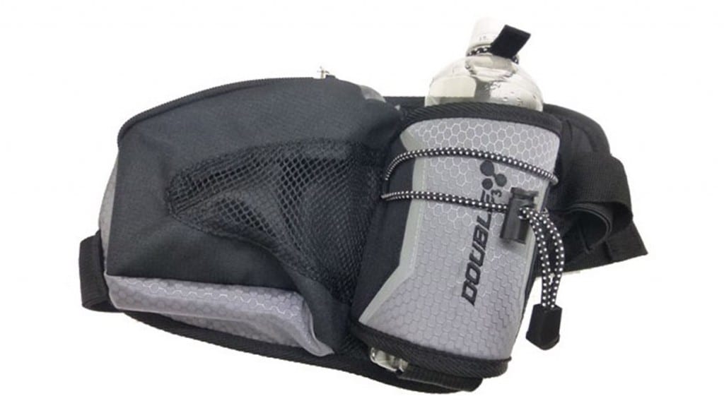 こちらは、Double3のウエストポーチです。最大の特徴は、ペットボトルを搭載できるスペースが備えられていることでしょう。長距離を走るランナーには欠かせない機能です。