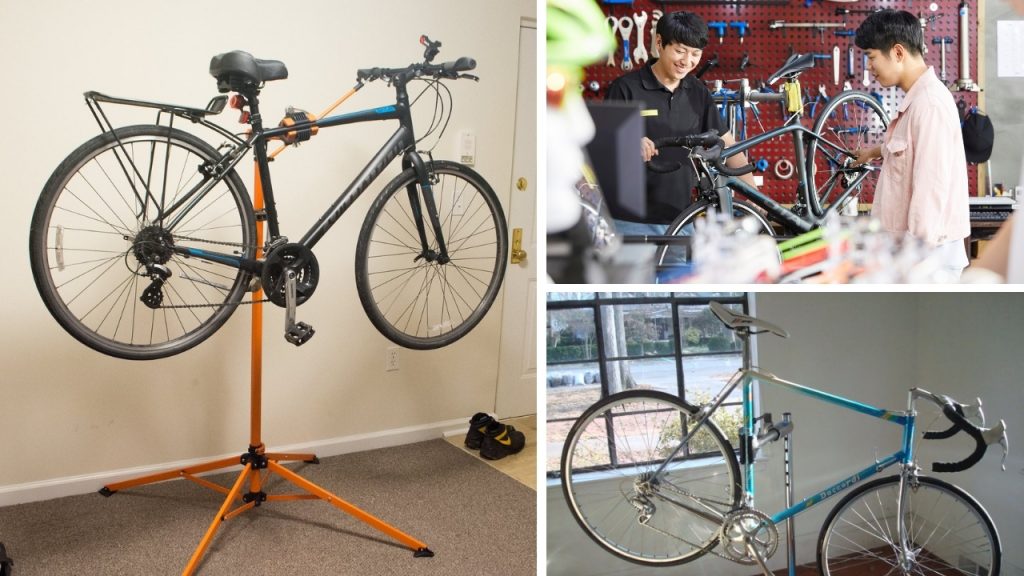 細かく言えば様々な種類がありますが、大まかにいうとメンテナンススタンドは「自転車を固定して作業をやりやすくするスタンド」です。
