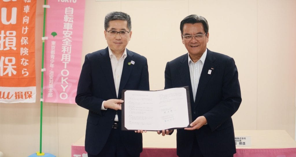2016年7月29日、東京都庁で開かれた記者会見で東京都とau損害保険株式会社(以下au損保)が自転車の安全利用の促進に関する協定を締結した。東京都が自転車の安全利用の分野で保険会社と協定を締結するのは今回が初めてのことである。