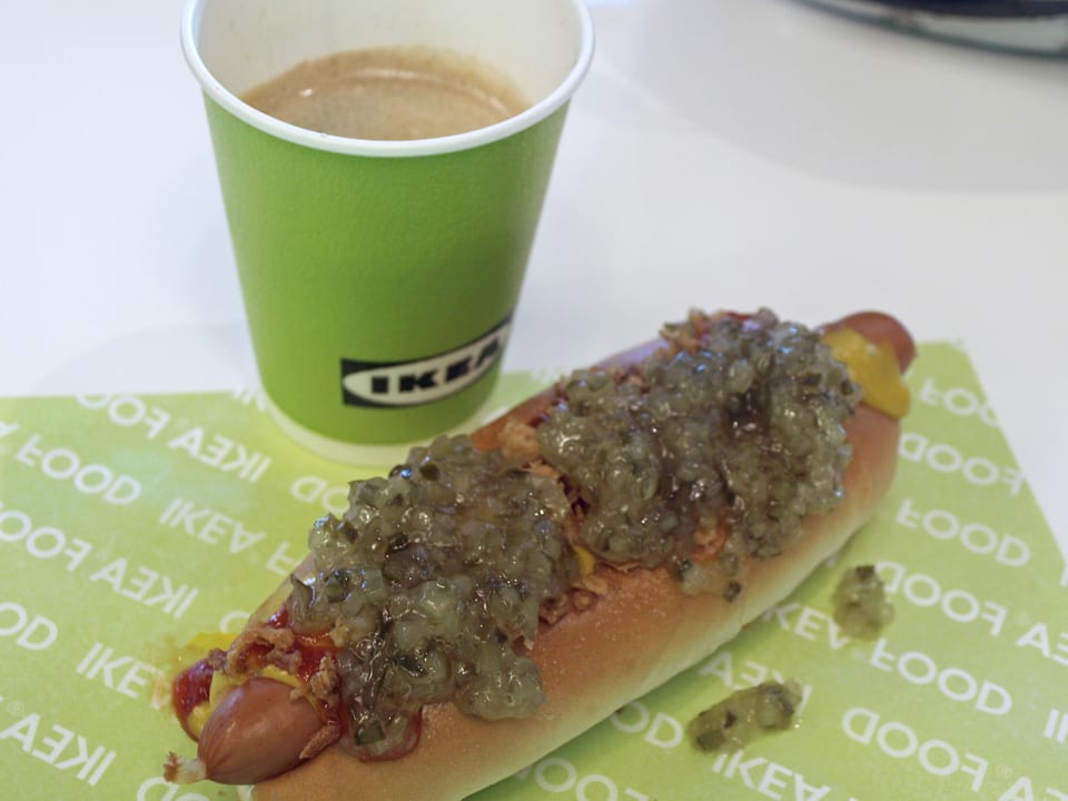 IKEAでトイレを借りたので、少しお金を落とさねば。そろそろ12:00になることだし、ホットドッグ&ホットコーヒーのセット(150円!)でも補給するとしますか。