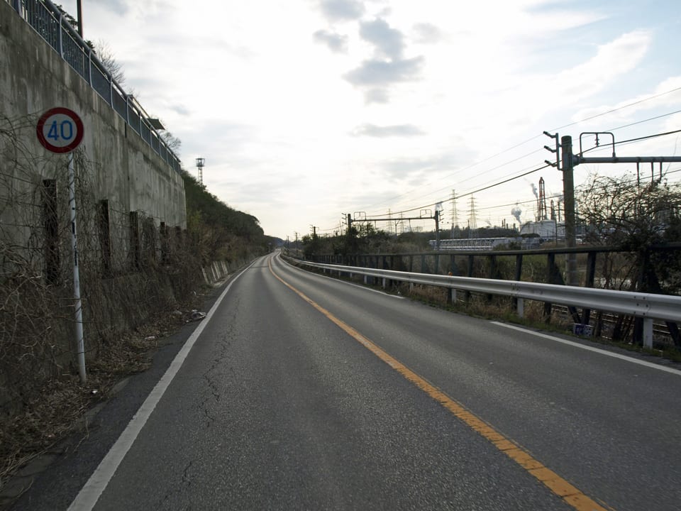 県道24号は姉ヶ崎駅前で県道287号に接続。そのまま道なりに進みます。左側は山、右側は内房線と国道16号の先に工業地帯。世界よ、これが日本の田舎風景だ。