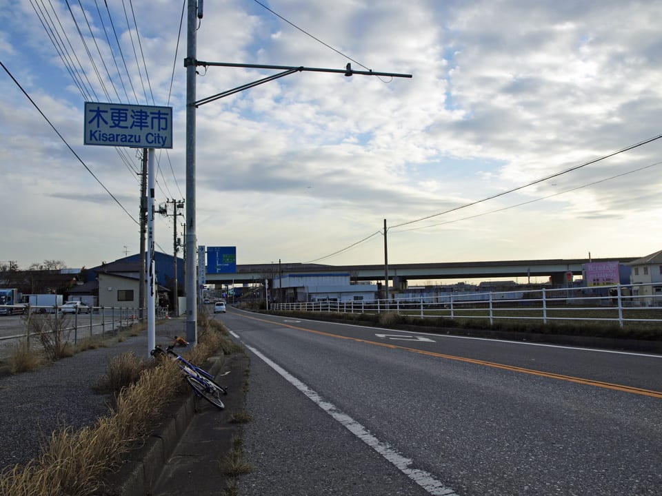 五井駅前を出て約50分、16:00過ぎに木更津市へ突入しました。ここまでの走行距離は約72km。かなり空が色づいてきたなあ。ともあれ木更津の市街地へ向かうとしよう。