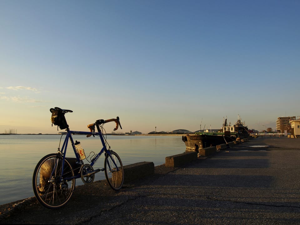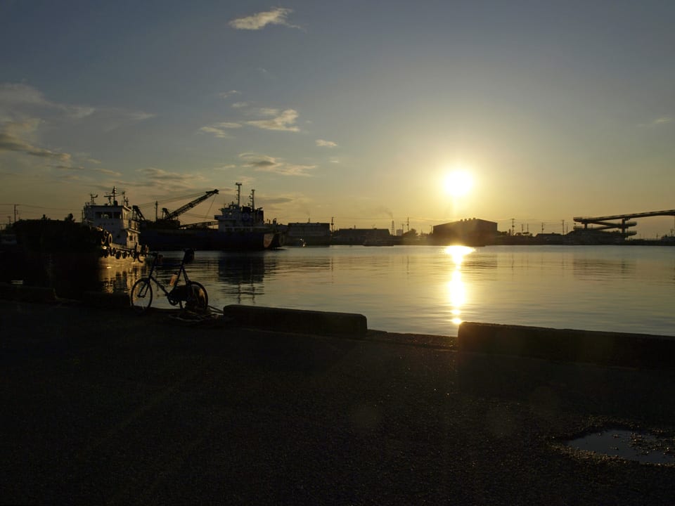 もっと先まで進みたいとも考えたけど、夜に無理して走ることもあるまい。木更津を今回の旅の終着地と決め、しばらく木更津港に沈む夕日を眺めることにします。
