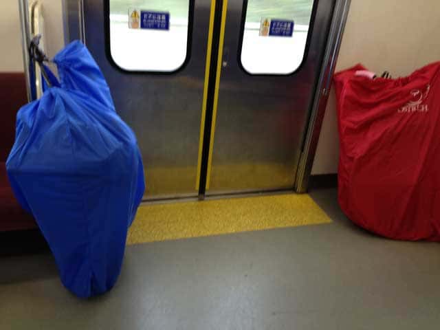 周りの人は輪行袋の中身が高価な自転車だとは思いません。ただの大きな荷物の1つです。不用意に自転車にぶつかったりされないためにも混雑する時間帯は避けましょう。