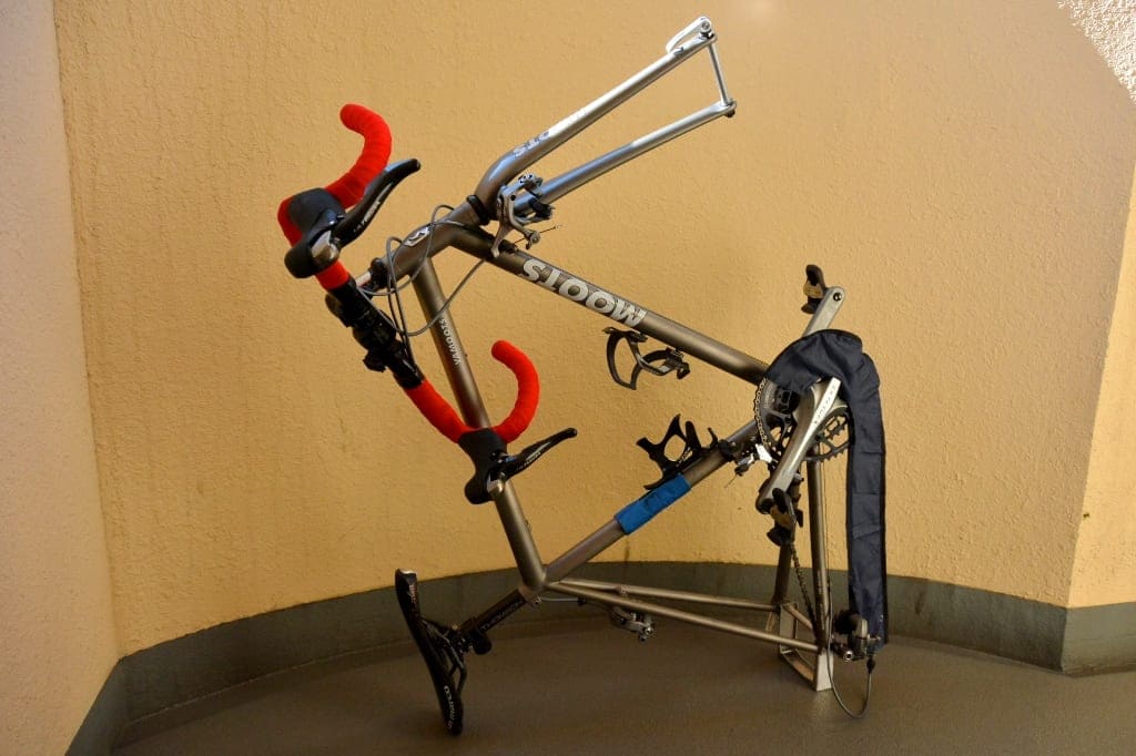 「たて型」は、頻繁に輪行をする人や自転車の構造に詳しい人におすすめです。リアにエンド金具が必要になりますが、何よりも前後輪を外すことでコンパクトになります。