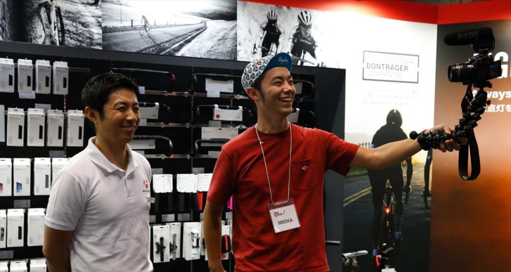 おなじみYou Tuberのけんたさん、トレックの新製品を一度に見られる展示会・トレックワールド中央のボントレガーブースへやってました。「実はボントレガーっていい商品多いですよねー」などと話しながら見ていると、背後から