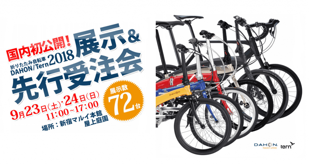 9月23日(土)、24日(日)の2日間、新宿マルイ本館の屋上Q-COURTにおいてDAHONとTernの2018年モデル一般向け全モデル展示会が開催される。