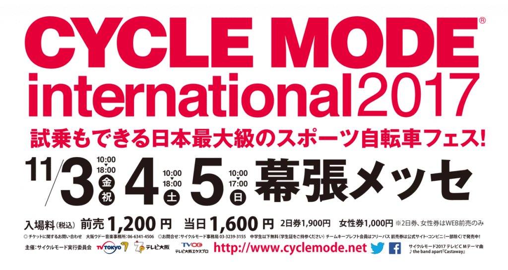 ◆お問い合わせ先: サイクルモード事務局 TEL:03-3239-3155 (平日11:00~18:00)