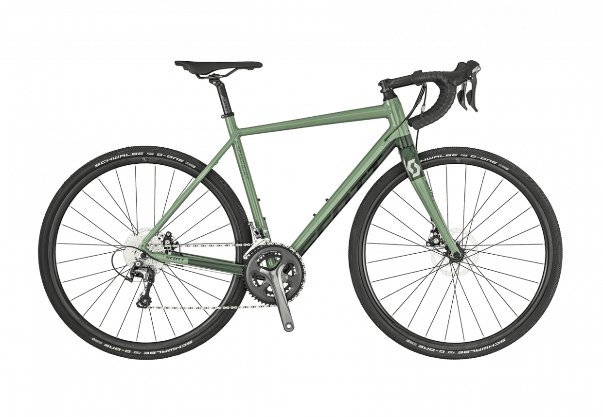 SCOTT(スコット)の定番アルミロードである「SPEEDSTER」の名を受け継ぎつつ、太めの35Cタイヤを装備し、オンロード以上、シクロクロスレース未満をカバーするシリーズ「SPEEDSTER GRAVEL(スピードスター グラベル)」。今回紹介するグラベルロードの中ではロードバイク寄りのモデルだ。街乗りや通勤通学をメインに考えている方にはぴったりな一台だろう。