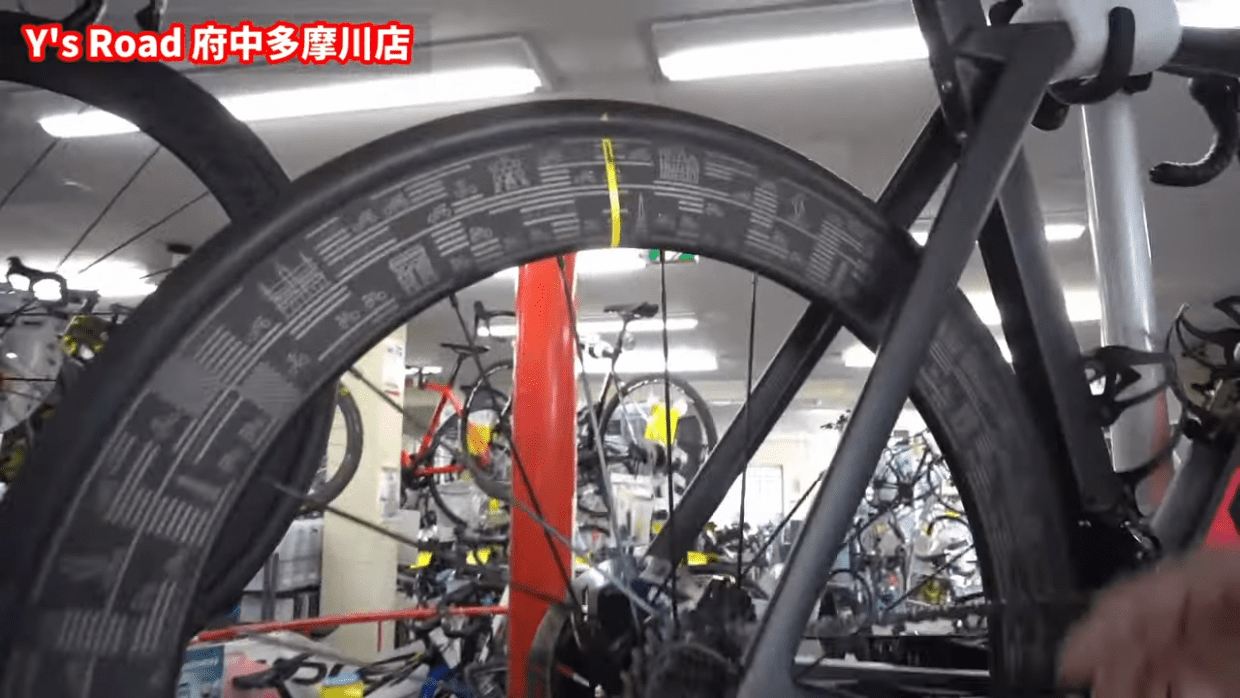 「多摩川サイクリングロードがとなりにあるので、やっぱり皆さん乗ってくる人が多いんですよ。なのでホイールを!」とふくだ店長。府中多摩川店は、Y’s Road NO.1のホイール在庫量! 首都圏内でも最大級の品揃えです。MAVIC、ボントレガー、フルクラム、カンパニョーロなどなど、常時100セットぐらい置いてあるそうです。