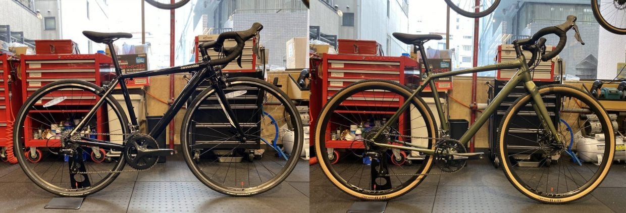 (左)ロードバイク:Cannondale CAAD Optimo SORA (右)グラベルロード:Cannondale TOPSTONE SORA