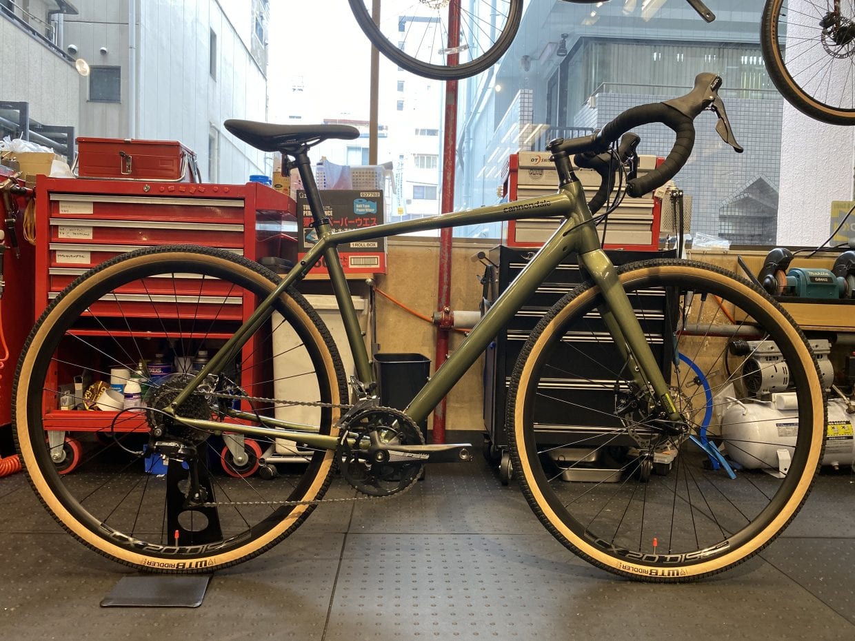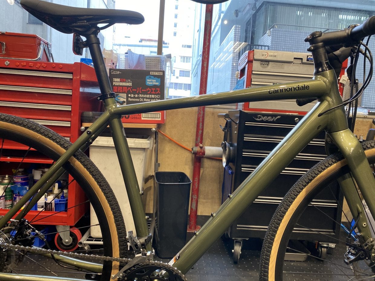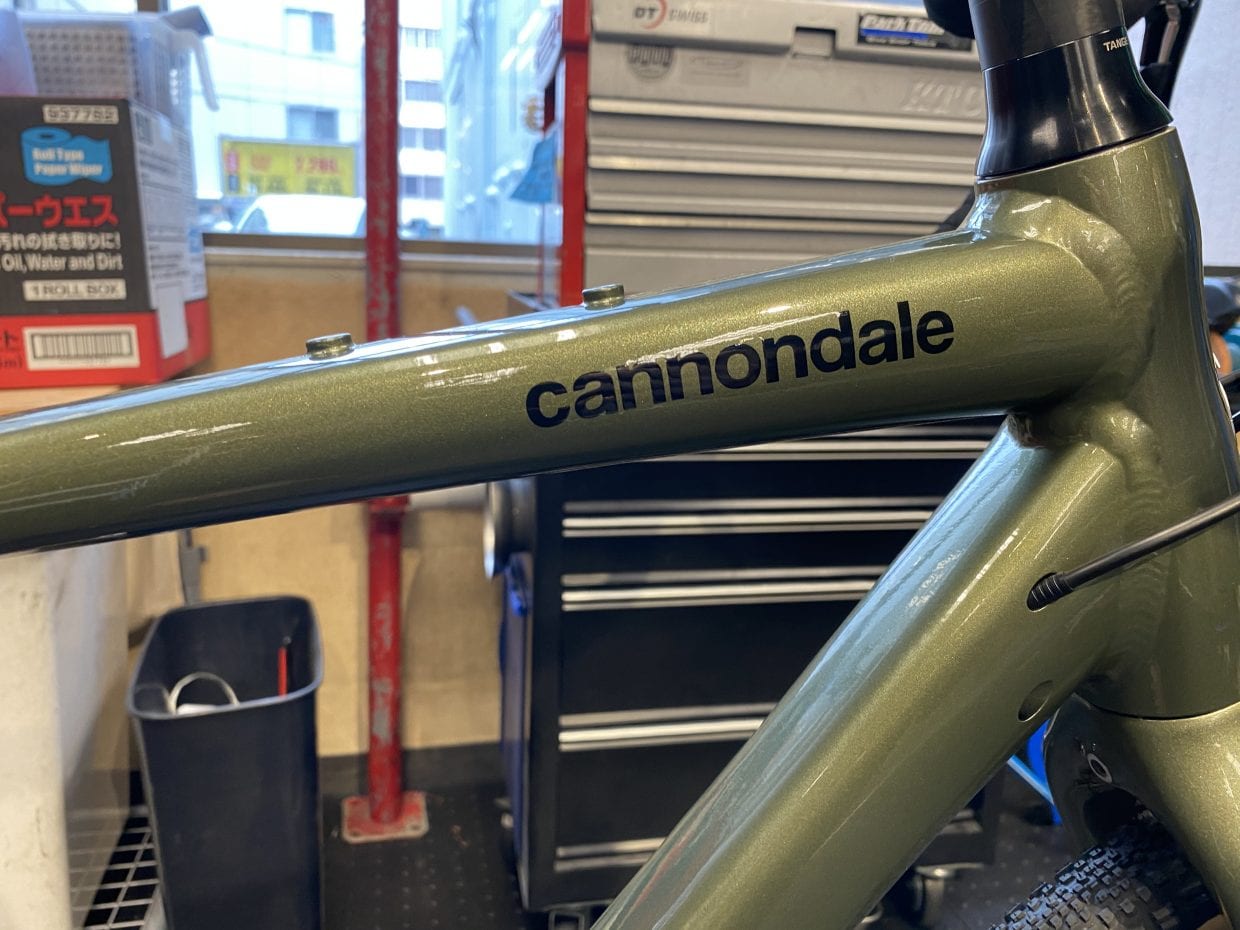 CannondaleはTrek、SPECIALIZEDと並ぶアメリカ3大メーカーのひとつ。TOPSTONEはCannondaleの一般向けグラベルロードです。TOPSTONEにはコンポーネントの仕様によりカーボン105、アルミ105、アルミSORAの3種類があり、こちらはSORA仕様となります。