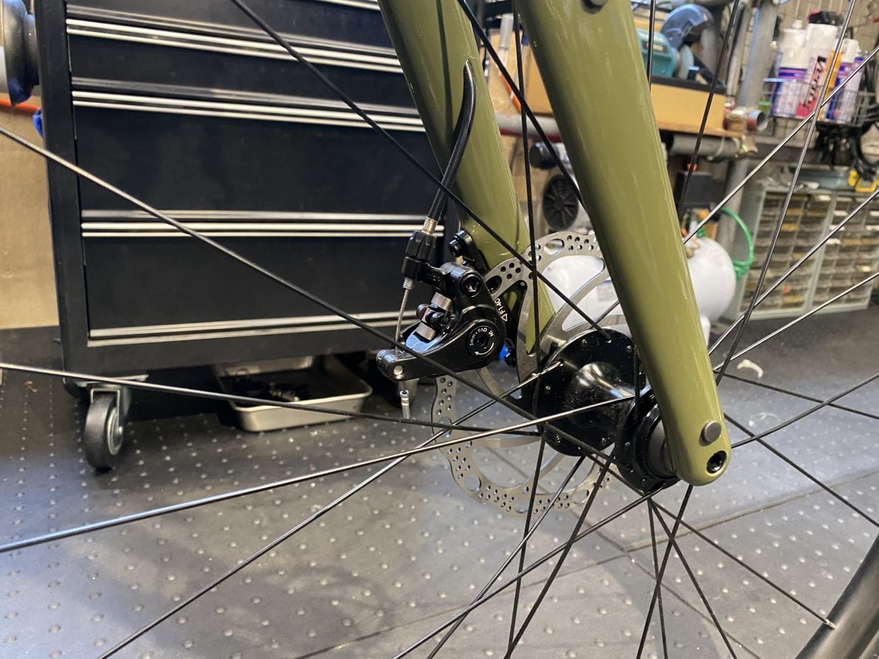 ほとんどのグラベルロードは、制動力の高いディスクブレーキを採用しています。ロングライドなどでは突然雨に降られることもあるもの。キャリパーブレーキ、リムブレーキというタイプはリムが濡れると滑ってしまい、ブレーキが効きづらくなるのに対し、ディスクブレーキは雨の日でも制動力が落ちにくく、安定しています。