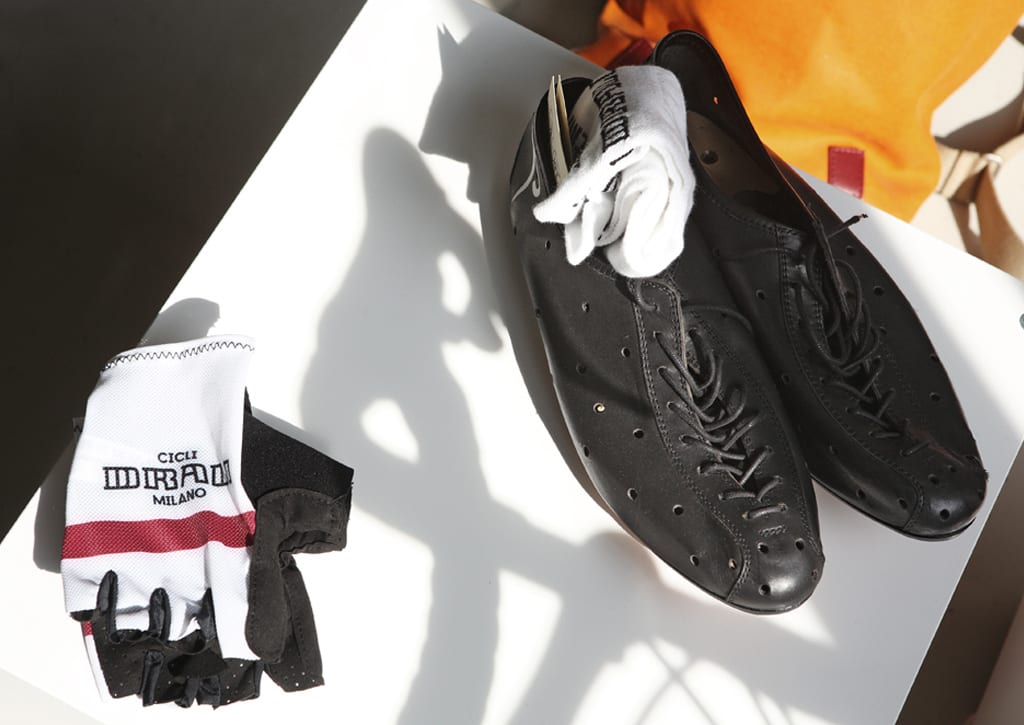 「DRALIのような伝統的な自転車ブランドをリニューアルするにあたり、ジュゼッペが長年作り続けてきた名品クロモリラグドフレームの“POKERISSIMA”(ポーケリッシマ)は同ブランドの歴史を語るシンボルと言えるモデルです。これに合わせて、50-70年代ヴィンテージのアパレルラインナップを用意しました。 ウールジャージはもちろん、シューズ、バッグ、リュック、サドルなど。また、新しいDRALIはその歴史と伝統を失うことなく、現代のテクノロジーとうまく融合させることを目指しています。そのため、カーボンフレーム“DARSENA”(ダルセーナ)や、スチール、アルミ製のグラベルバイクもラインナップし、これらは全て、ユーザー個々のジオメトリに合わせてオーダーメイドで製作しています」