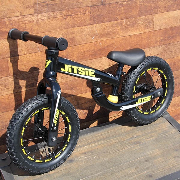 バイク・自転車のトライアル部門で有名なJITSIE社が製作したキックバイクです。サスペンション機構(サドルの下部)が採用されているので凹凸のある路面でも快適な走行が期待できます。前後スポークホイールのリムに社名ロゴが入っているところもオシャレ。ブロックタイヤでオフロードも楽しく走ることができ、ここまでのスペックを誇りながら軽量アルミ製フレームで重量4.0kgを切る軽快性を備えています。