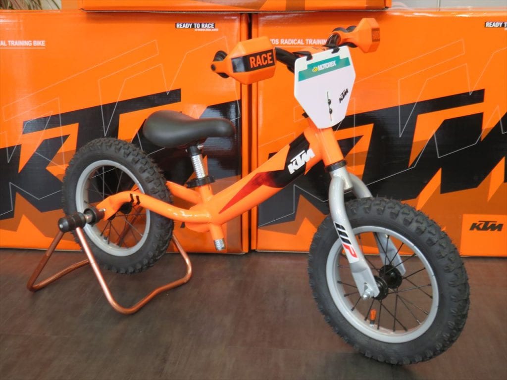 世界的なオートバイメーカーであるKTM(ケーティーエム)が販売するキッズトレーニングバイクの2020年モデルです。同社のバイクを彷彿とさせるカラーリングや、手の怪我を防ぐためにオフロードバイクで装着されるナックルガード、ハンドルに頭をぶつけた際に怪我を防ぐバーパッドなど、安全性に加えてデザイン面でもカッコいいキッズバイクです。ブロックタイヤで未舗装路もガンガン走れそうですね。取り扱い店の丸富オートさんの公式YouTubeチャンネルでは、組み立て説明の動画も公開されています。