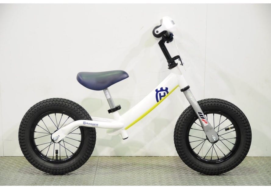 KTMの傘下にあるオートバイブランド ハスクバーナのキッズバイクです。ナックルガードやバーパッドなどが装着されて、KTMのトレーニングバイクと同じようにオフロードバイクらしさが見えるキッズバイクとなっています。透明感のあるカラーリングがスタイリッシュで、スポークホイールが装着されているところも良いですね。