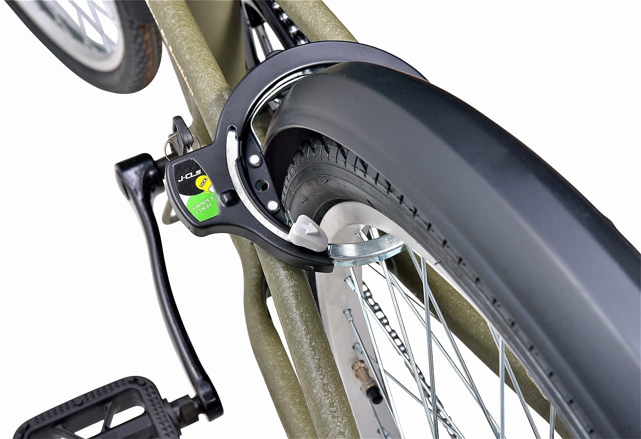 今回、ご紹介するJeepブランドの折りたたみ自転車は、Jeepのブランド自転車の中でも特に人気のある車種で、フレームの塗装にもこだわっており、他社の自転車にはあまり見られないWrinkle(リンクル)塗装=シワ加工を施してあるので、手触りであったり、見た目のインパクトが強い自転車になっている。