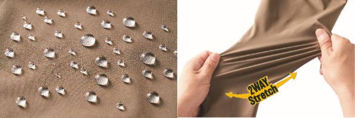 耐久撥水加工で急な雨でも対応可能。ストレッチ加工で動きやすさを追求!