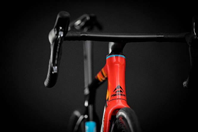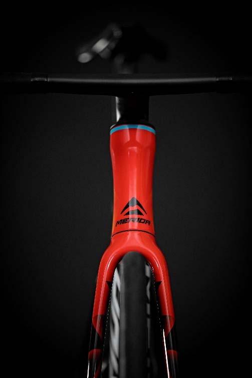 ケーブルの完全内装化を実現する、メリダオリジナルのステム一体型のフルカーボンコクピットを採用。ケーブル類を完全に内装することによる空力性能の向上とメンテナンスのしやすさを高い次元で両立させた。