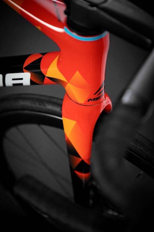 フレームの主な変更点としては、前影部の面積の減少、ヘッドチューブとフォークに REACTO同様の設計の採用。シートポストクランプはフレーム内に隠し、シートステーの取り付け位置を下げている。さらに新たに開発したMERIDAオリジナルのステム一体型のハンドルでブレーキケーブルなどの完全内装化も行い、大幅な空気抵抗の低減を実現した。
