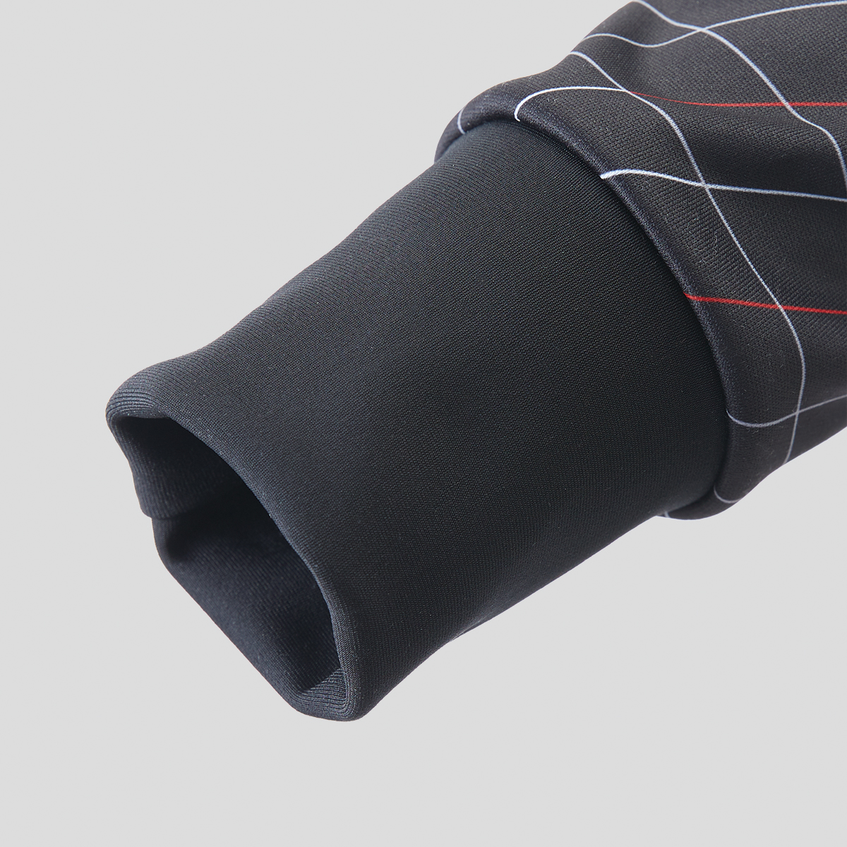 「サーモ ジャージ」はスポーティーでシャープなプリント柄を配置した15℃対応のジャージ。吸汗速乾性に優れたソフトな肌触りの裏起毛素材が、秋冬のライドを快適にサポートする。