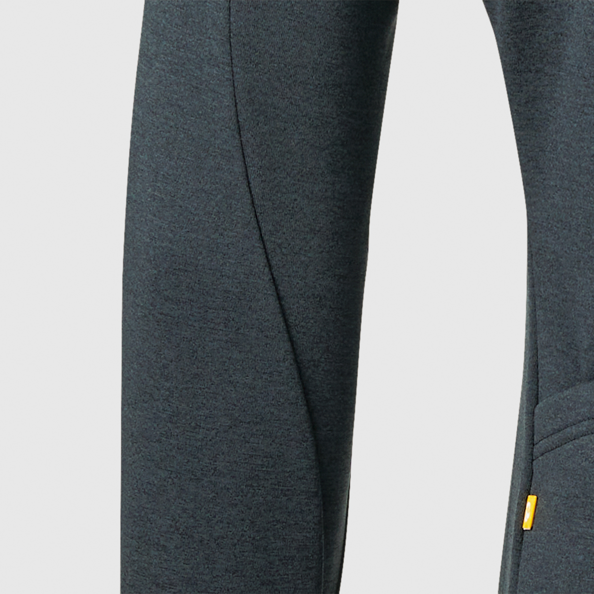 「ヘザー ジャージ」はシンプルで着やすい杢柄の15℃対応ジャージ。柔らかな着心地と優れたストレッチ性で動きやすく、高い吸汗性と適度な防風性を備えた裏起毛素材は、ムレを抑えて温く、カジュアルなライドにもフィットする1着だ。