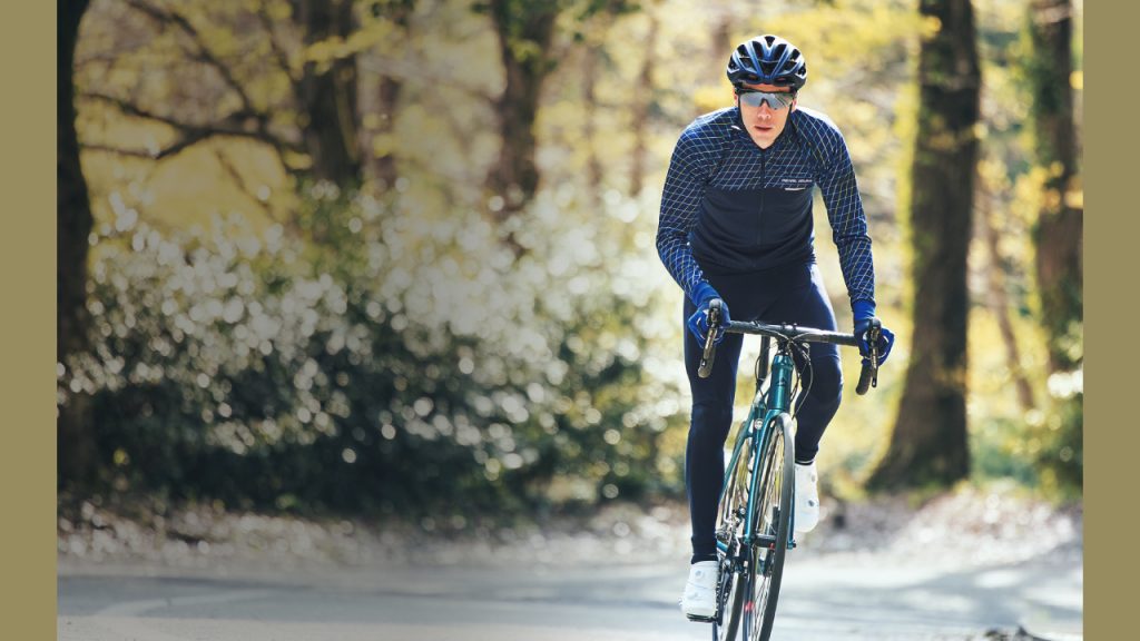 「サーモ ジャージ」はスポーティーでシャープなプリント柄を配置した15℃対応のジャージ。吸汗速乾性に優れたソフトな肌触りの裏起毛素材が、秋冬のライドを快適にサポートする。