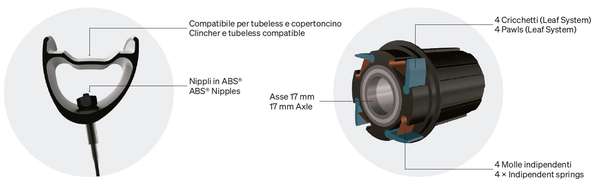 リム内幅は23mmあり、Gera Alloyディスクホイールは、57mmまでのタイヤ幅に対応している。リアハブには、大トルクにも対応する4つの独立したツメ(リーフシステム)を備えたフリーハブボディを採用し、わずか5°の角度でペダルの力を伝達する。各ツメには独立した幅広のスプリングを備えており、各ツメの確実な噛み合いを保証している。