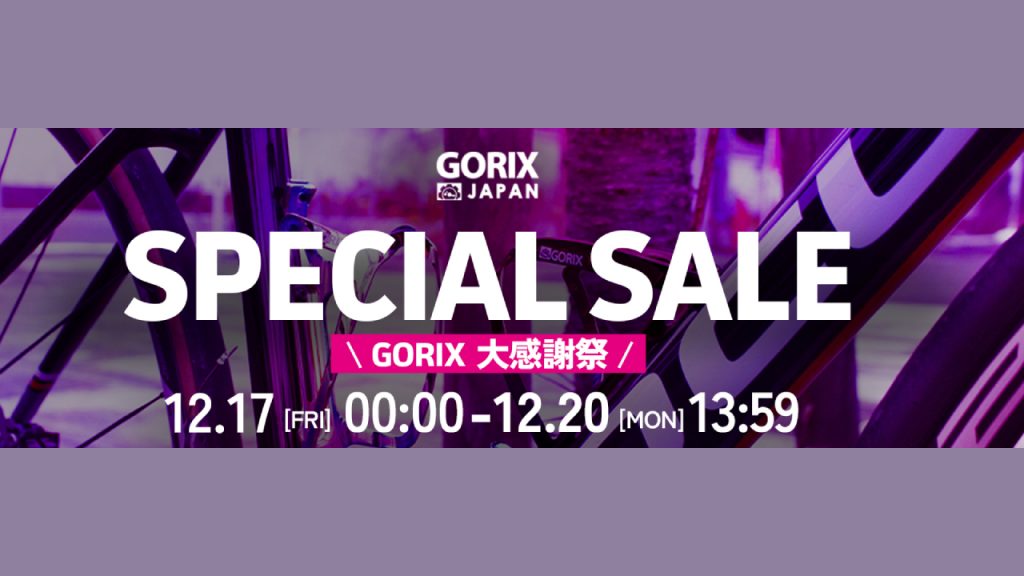 自転車パーツブランド「GORIX」の公式オンラインストアで12/17(金)0:00~12/20(月)13:59までサドル、スタンド、バッグ、工具等の自転車用品が「最大81.5%OFF」となる大感謝祭セールを開催。
