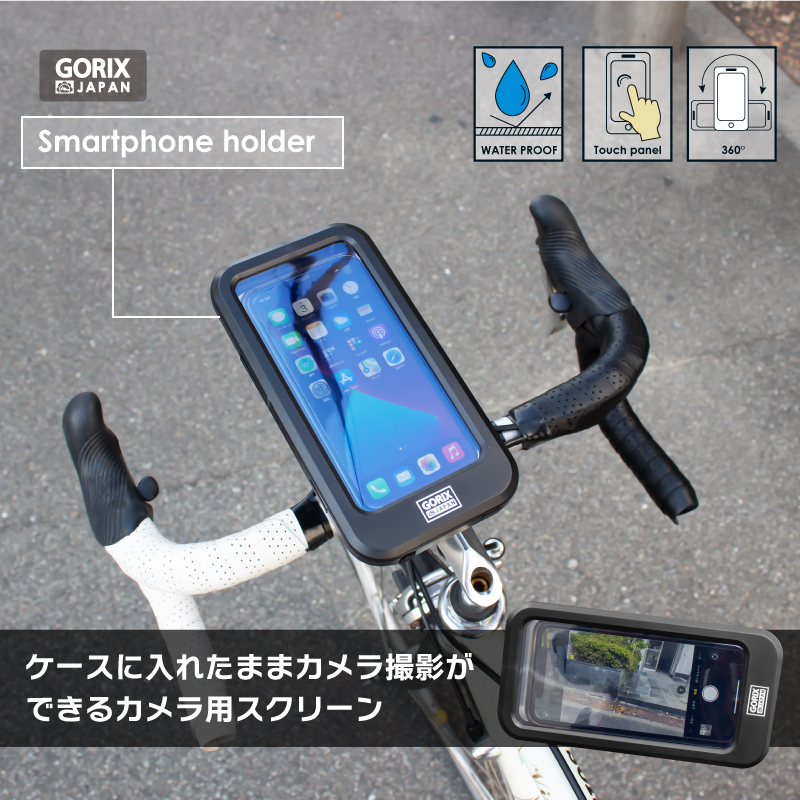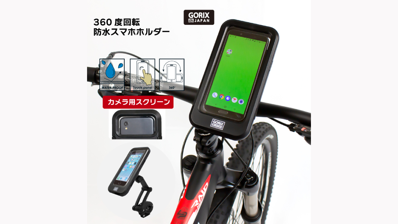 【ケースに入れたままカメラ撮影可能!!】自転車パーツブランド「GORIX」から、360度回転防水スマホホルダー(GX-SH19)が新発売!!