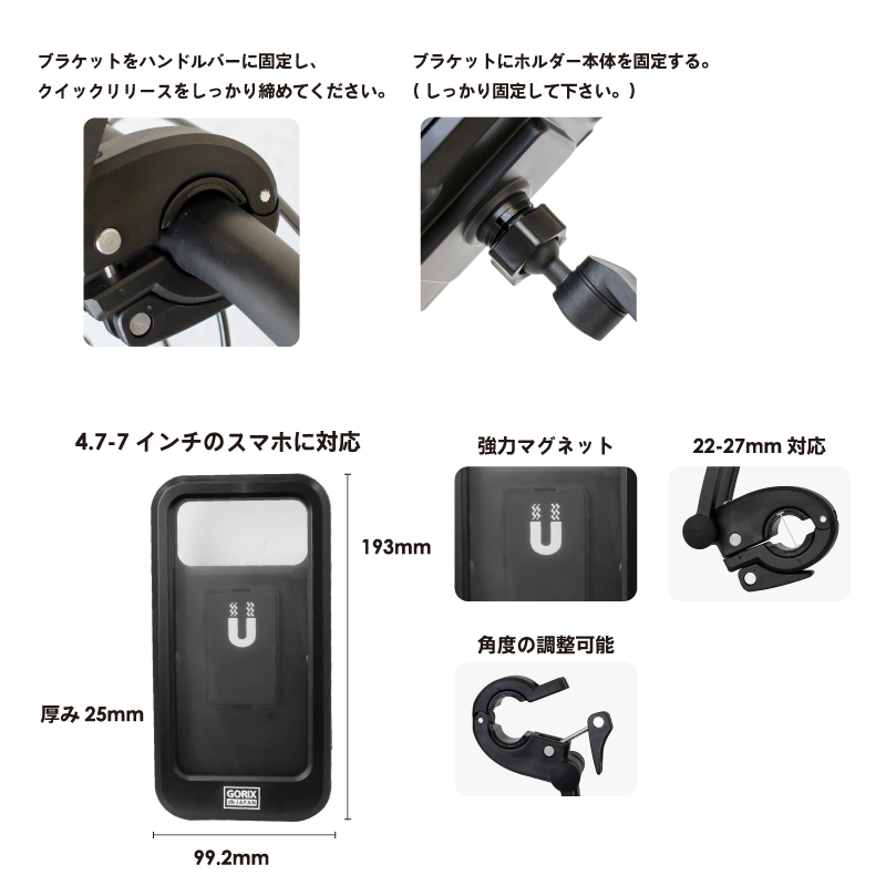 - 商品名:GORIX 360度回転防水スマホホルダー(GX-SH19)