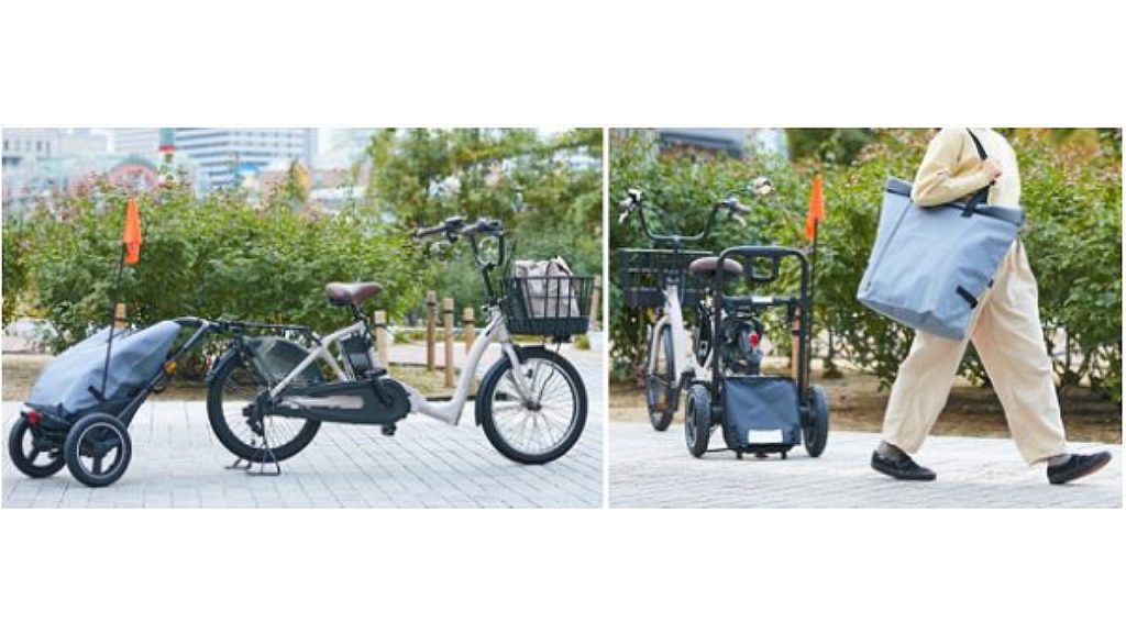 通園や買い物、外遊び時など、子どもを乗せながら大荷物になってしまう機会は少なくない。そんな危なっかしい場面をなんとかしたいと、自転車用チャイルドシートメーカーのパイオニアとして、約2年をかけて開発したのがCamilyだ。容量約95Lの専用コンテナバッグは、通園時に困るお昼寝布団2組を収納可能。荷物をハンドルにかける必要がなくなり、安全なハンドリングと、12インチのエアータイヤでスムーズな走行を実現した。トレーラーはワンタッチで着脱でき、キャリーカートとしても活躍する。自転車でのまとめ買いやアウトドアなど、お出かけの可能性を広げる。
