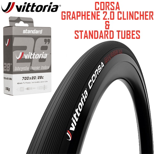 VITTORIA 2本セット CORSA グラフェン2.0 クリンチャー / スタンダード ブチル チューブ オールブラック 700×25C 仏式バルブ48mm