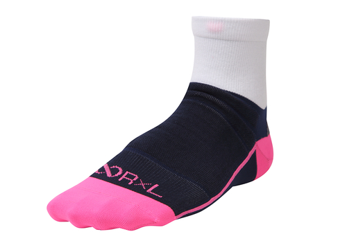 武田レッグウェアーが販売するR×Lのサイクルソックス。甲側パイル編み仕様(クッション)によって、シューズのダイヤル部などによる甲部の圧迫が軽減されます。ロングライドで足が痛い!と感じる方に最適です。