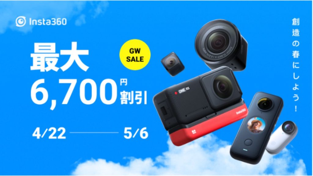 Insta360 Japan株式会社(以下Insta360)は2022年4月22日から5月6日にかけて、「創造の春にしよう」というテーマでゴールデンウィークセールを実施する。