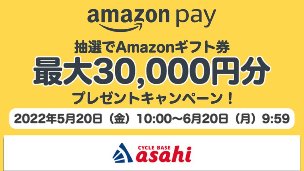 お客様の快適な自転車ライフを提供する株式会社あさひ(所在地:大阪市都島区、代表取締役社長:下田佳史)は、サイクルベースあさひ公式オンラインストア(https://ec.cb-asahi.co.jp/)にて、はじめて商品を購入する際にAmazon Payを利用して支払ったお客様の中から抽選で、最大30,000円分のAmazonギフト券をプレゼントするキャンペーンを5月20日から開始する。