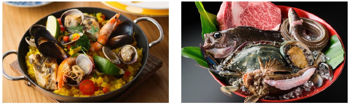「カフェレストラン&バー舷GEN」は、吹き抜け空間の開放感な雰囲気とクラシックモダンなインテリアの中、近海で揚がる鮮魚のカルパッチョなどシーフード&オイスター料理や旬の瀬戸内食材を使ったグリル料理など多彩な創作メニューを提供するオールデイダイニング。穏やかな気候と⽴地に恵まれた⾷材の宝庫尾道は、豊富な海の幸はもちろんのこと、尾道ブランド農産物認証制度が確立され、全国⼀の⽣産量を誇るレモンやネーブルオレンジ、分葱をはじめ野菜や果実の質の⾼さでも有名。これら豊富な地域⾷材の旨味を引き出し、尾道の伝統や⽂化を⾝近に感じられるような食体験を提供する。