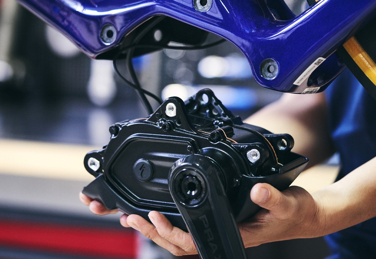 スペシャライズドのE-BIKEは自社開発の「スペシャライズドSL1.1モーター」を搭載しており、非常に軽量でパワフルなのが特徴。他社の同等E-BIKEと比べて2〜5kgほど軽く仕上がっています。