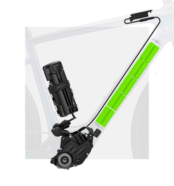 拡張性も高く、専用アプリと接続すればバッテリー残量の表示、ライドの記録はもちろん、走り方に合わせたモーターのチューニングも可能。また、モーターにはすべてのANT+ヘッドユニットにデータを送信できるパワーメーターが内蔵され、別売りのレンジエクステンダーを追加すれば航続距離を最長65km追加することだってできるのです。