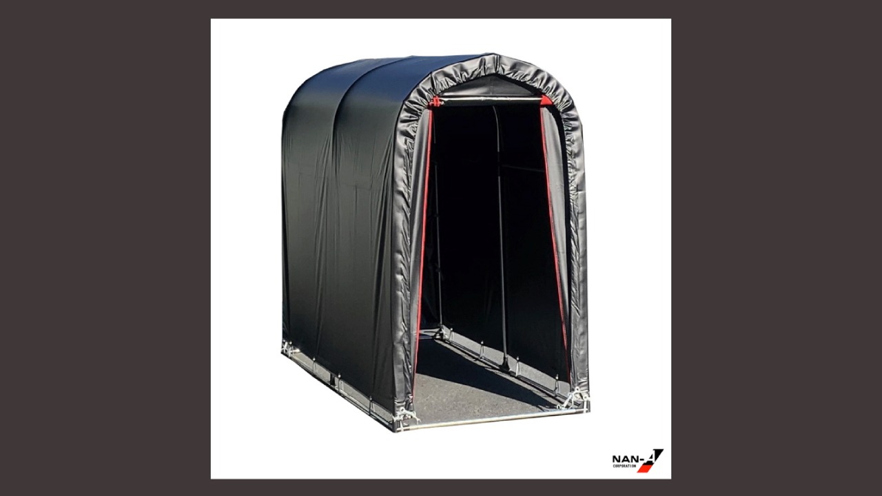 南榮工業株式会社から発売中の組立収納庫「サイクルハウスBK」は黒と赤のデザインで丈夫なターポリン素材を使用。替幕や部材の購入も可能で、長期間付き合える商品だ。一部のホームセンターにて現物展示しており、ECからの購入も可能。