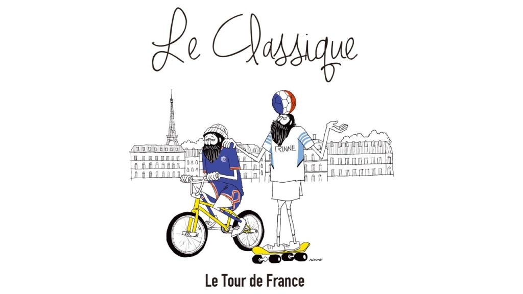 今回は、自転車とサッカーとグランツールというテーマをいただき、描きましたが、ロードバイクだけではつまらないと思い、フランスはストリートなイメージのBMXとスケボー、職人の国イタリアは、伝統的なロードバイク、闘牛の国スペインはちょっと尖ったピストバイクでウイリー、と三国三様、それぞれ描いてみました。