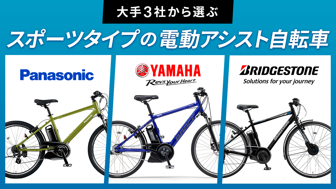 今回は電動アシスト自転車メーカーである大手3社、「パナソニック」「ヤマハ」「ブリヂストン」から、スポーツタイプの電動アシスト自転車をピックアップ。
