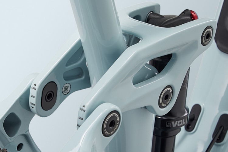 新開発の「フリップチップ マエストロ3」を搭載しており、ライダーはライディングスタイルや地形に応じてヘッドチューブ角、シートチューブ角、ボトムブラケットの高さをハイ、ミドル、ローの3段階に設定変更することが可能です。3つのポジションの平均的な変化は、ヘッドチューブとシートチューブの角度が0.4度ずつ、ボトムブラケットのドロップが5mmずつとなります。