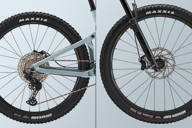 また、前29インチ、後27.5インチの前後異径ホイール専用設計によって、リアホイールトラベルが最適化されるとともに、外径の大きい29インチホイールは安定性と走破性の向上、27.5ホイールはより高い反応性を実現します。