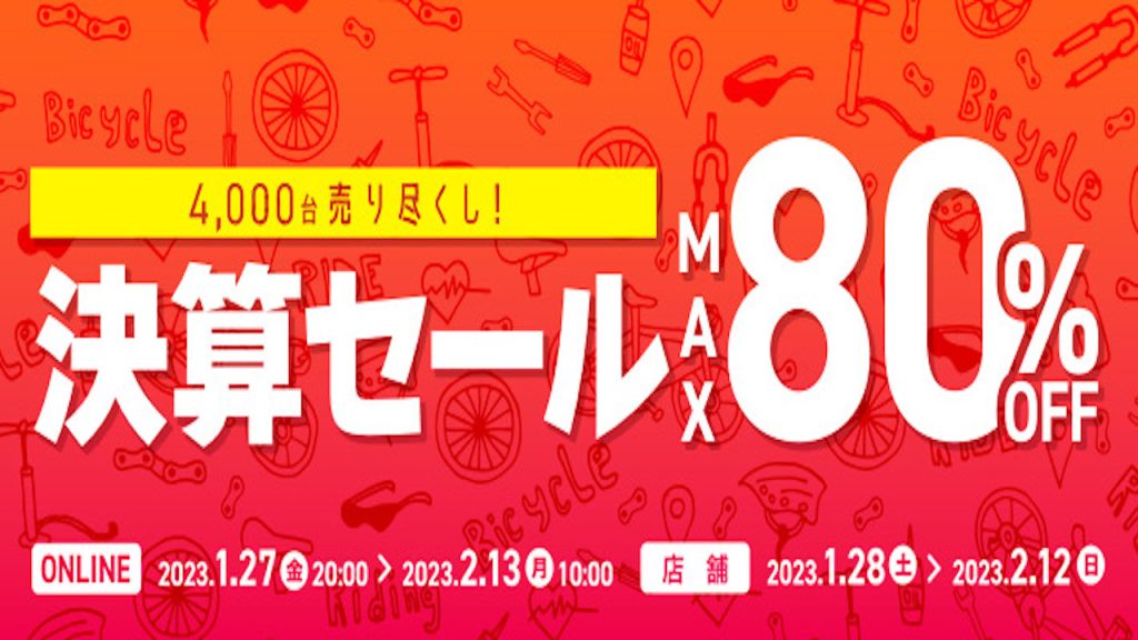 紹介できたのはほんの一部!なんといっても完成車4,000台・ウェア10,000点売り尽くしですからね!今すぐセール会場へGO!