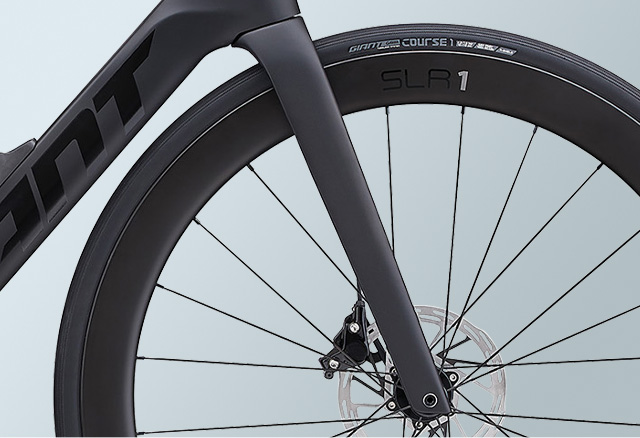 独自のコックピットシステムがエアロ性能とメンテナンス性を両立して、ライダーのポジション調整も容易に。エアロ性能とタイヤグリップを高めるワイドフックレスリム仕様の「SLR 1 50 DISC」ホイールシステムを標準装備。