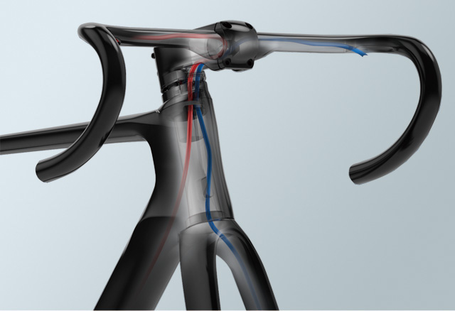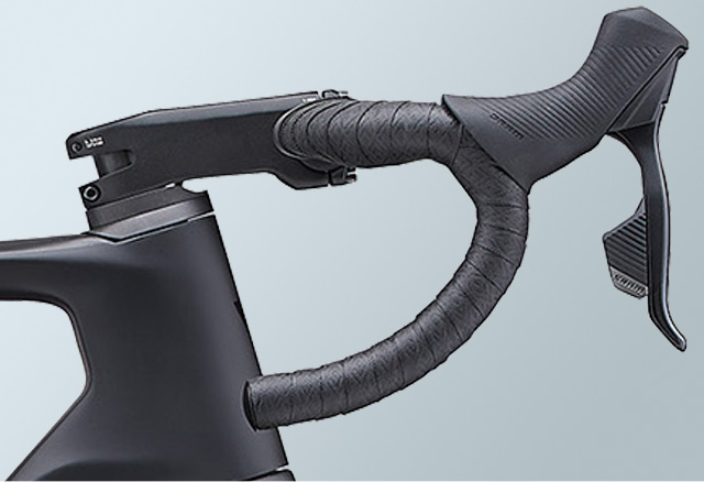 新たに設計されたケーブル内装式カーボンバー&カーボンステム。エアロ性能と高いメンテナンス性を両立しポジションの調整が簡単に。