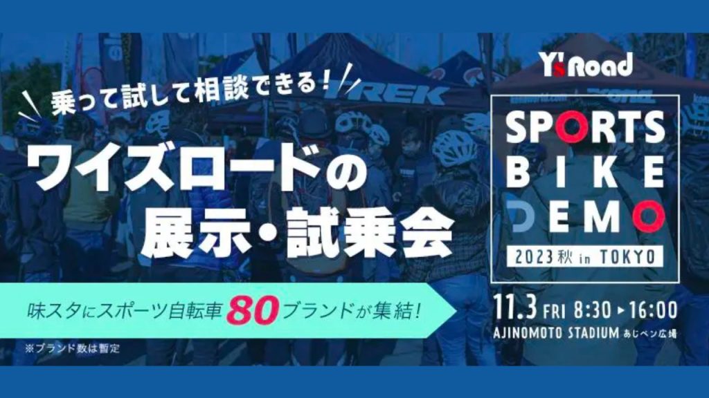 ワイズロードの大規模展示・試乗会「ワイズロード スポーツバイクデモ2023秋 in 東京」が開催されます。